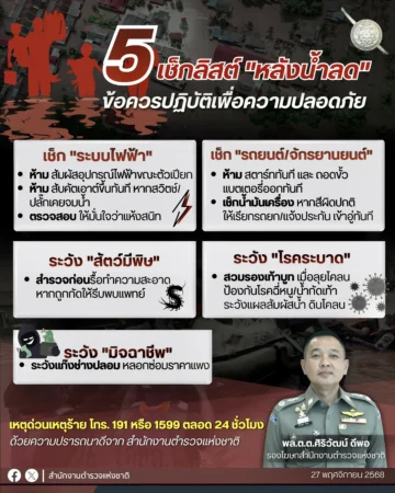 สำนักงานตำรวจแห่งชาติแนะ “5 เช็กลิสต์” กู้ชีพบ้าน-รถหลังน้ำลด ป้องกันไฟดูด-เครื่องยนต์พัง