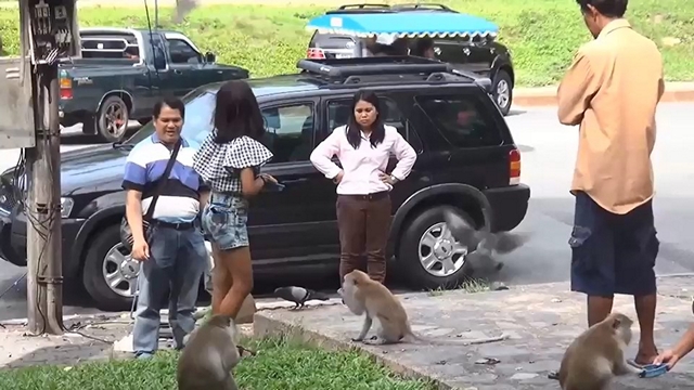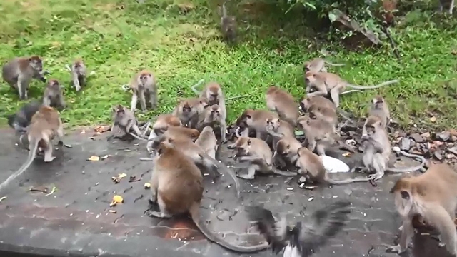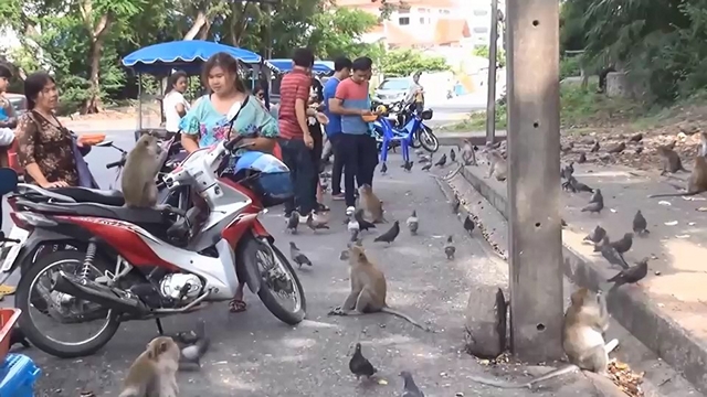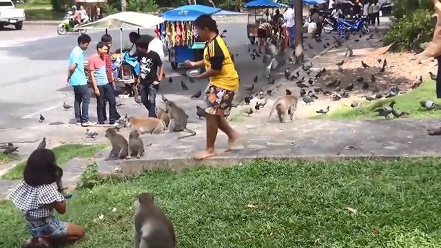 สงขลา-วันหยุดสุดสัปดาห์ นกพิราบและลิงเขาน้อยเขาตังกวนอิ่มเอมถ้วนหน้า หลังนักท่องเที่ยวเดินทางมาท่องเที่ยวที่แหลมสมิหลาสงขลา แวะมาเที่ยวชมฝูงลิงและฝูงนกพิราบที่บริเวณเชิงเขาตังกวน โดยซื้ออาหารให้ลิงและนกกิน เพื่อเป็นการทำบุญแจกทานให้กับสัตว์ถือเป็นการสร้างบุญสร้างกุศลให้กับตนเอง