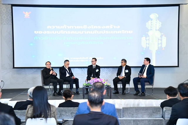 . ภายในงานสัมมนามีการบรรยายพิเศษเรื่อง “นโยบายด้านโครงสร้างพื้นฐานโทรคมนาคมแห่งชาติ สู่ยุค AI-Cloud-6G เพื่อการยกระดับเศรษฐกิจดิจิทัลของประเทศไทย” โดย นายเวทางค์ พ่วงทรัพย์ เลขาธิการคณะกรรมการดิจิทัลเพื่อเศรษฐกิจและสังคมแห่งชาติ บรรยายพิเศษเรื่อง “Regulatory Reform for Telecom Infrastructure : ความท้าทายใหม่ในการกำกับดูแลโครงสร้างพื้นฐานโทรคมนาคมของประเทศไทย” โดยศาสตราจารย์คลินิก นายแพทย์สรณ บุญใบชัยพฤกษ์ ประธานกรรมการกิจการกระจายเสียง กิจการโทรทัศน์และกิจการโทรคมนาคมแห่งชาติ จากนั้น เป็นการอภิปรายเรื่อง “ความท้าทายเชิงโครงสร้างของระบบโทรคมนาคมในประเทศไทย : ก้าวข้ามข้อจำกัดเพื่อปลดล็อกศักยภาพเศรษฐกิจดิจิทัล” วิทยากรโดย นายสุทธิศักดิ์ ตันตะโยธิน รองเลขาธิการคณะกรรมการกิจการกระจายเสียงกิจการโทรทัศน์ และกิจการโทรคมนาคมแห่งชาติสายงานกิจการโทรคมนาคม