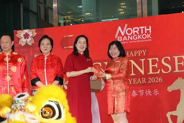 ผู้สื่อข่าวรายงานว่า มหาวิทยาลัยนอร์ทกรุงเทพ จัดงานเฉลิมฉลองเทศกาลตรุษจีน ประจำปี 2026 อย่างยิ่งใหญ่และงดงาม ภายใต้บรรยากาศแห่งมิตรภาพและการแลกเปลี่ยนวัฒนธรรมไทย–จีน เมื่อวันที่ 12 กุมภาพันธ์ พ.ศ. 2569 เวลา 17.00–20.00 น. ณ ลานกิจกรรมอเนกประสงค์ อาคาร 2 วิทยาเขตรังสิต โดยมีนักศึกษาชาวไทยและจีน คณาจารย์ ตลอดจนแขกผู้มีเกียรติเข้าร่วมงานอย่างคับคั่ง สร้างสีสันและความคึกคักทั่วทั้งบริเวณงาน