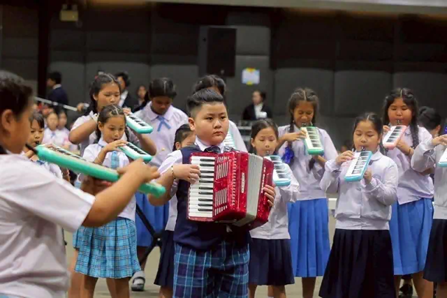 โดยนักเรียนระดับอนุบาล – มัธยมศึกษา จากทั่วประเทศ จำนวน ๘๐๐ คน และ ด.ช.แดนไทย จงวัฒนาไพศาล นักเรียนโรงเรียนสารสาสน์วิเทศบางบัวทอง จ.นนทบุรี นำแสดง หีบเพลงAccordion ในบทเพลงดังกล่าวถวายทรงทอดพระเนตร ซึ่ง