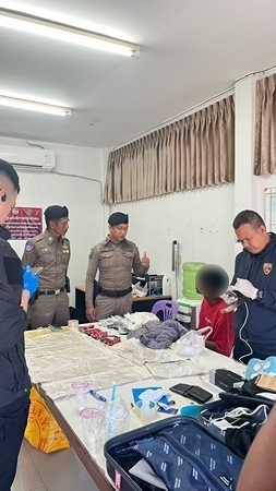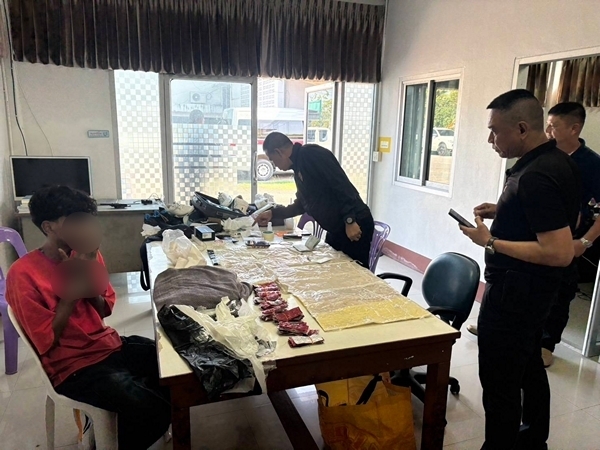 วันนี้ 12 เมษายน 69 ที่ สภ.คลองหอยโข่ง จังหวัดสงขลา พนักงานสอบสวน สภ.คลองหอยโข่ง พร้อม ตำรวจตรวจคนเข้าเมืองจังหวัดสงขลา ตำรวจท่องเที่ยว และฝ่ายปกครองอำเภอคลองหอยโข่ง ร่วมกันสอบปากคำ นาย อับดุลเราะห์มาน ชาวศรีลังกา อายุ 18 ปี หลังจากช่วงกลางดึกเมื่อวันที่ 11 เมษายน ถูกจับกุมที่ท่าอากาศนานาชาติหาดใหญ่ เนื่องจากตรวจพบว่า มีการนำพายาเสพติดจำนวนมากพันไว้รอบตัวเอง เพื่อตบตาเจ้าหน้าที่ แต่สุดท้ายก็ถูกจับกุมได้ พร้อมสัมภาระ ซึ่งตำรวจพิสูจน์หลักฐานได้ตรวจสอบพิสูจน์แล้วพบว่า เป็นเฮโรอีน น้ำหนักรวม 2,440 กรัม และ แฮปปี้ไฟว์ หรือ แฮปปี้วอเตอร์ 910 เม็ด