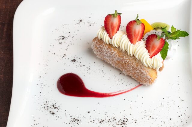 • สตรอว์เบอร์รี่ชอร์ตเค้ก เสิร์ฟพร้อมซอสสตรอว์เบอร์รี่