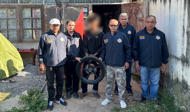 จากการตรวจค้นภายในบ้านพัก เจ้าหน้าที่พบ ล้อแม็กด้านหน้า (พร้อมยาง)ของรถจักรยานยนต์ยี่ห้อ Honda Wave 110 i ได้แจ้งความรถหายไว้เมื่อวันที่ 18 เม.ย. 2569