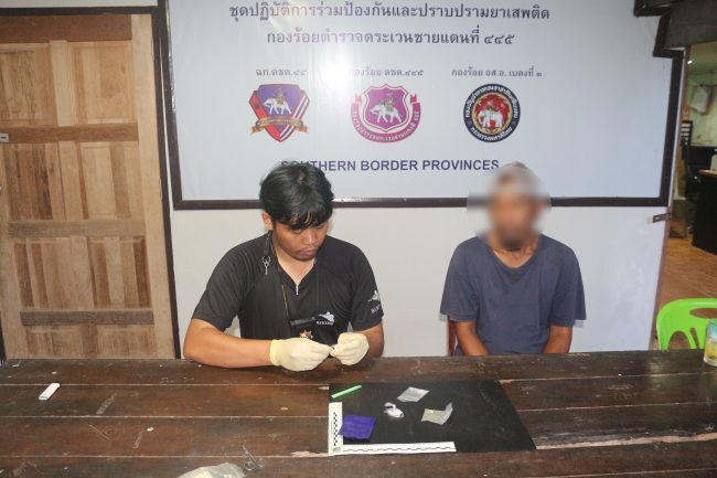 ยะลา-เบตง เจ้าหน้าที่ ตชด. อส. เข้าค้นบ้านพักพนักงานเกษตรตำบล จับกุมพ่อค้ายา ลูกค้า
