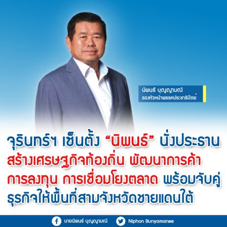 นายจุรินทร์ ลักษณวิศิษฏ์ หัวหน้าพรรคประชาธิปัตย์ รองนายกรัฐมนตรี และรัฐมนตรีว่าการกระทรวงพาณิชย์ ได้ลงนามหนังสือแต่งตั้งคณะทำงานกำหนดแนวทางการส่งเสริมความร่วมมือทางด้านเศรษฐกิจ การค้า การลงทุน และการแก้ไขปัญหาเศรษฐกิจจังหวัดชายแดนภาคใต้ กระทรวงพาณิชย์ โดยได้แต่งตั้งนายนิพนธ์ บุญญามณี รองหัวหน้าพรรคประชาธิปัตย์ ที่ปรึกษารัฐมนตรีว่าการกระทรวงพาณิชย์ เป็นประธานคณะทำงานฯ เพื่อกำหนดแนวทางการส่งเสริมความร่วมมือทางด้านเศรษฐกิจ การค้า การลงทุน ในจังหวัดชายแดนภาคใต้ รวมถึงติดตามและขับเคลื่อน การแก้ไขปัญหากทางเศรษฐกิจ และสร้างความเข้มแข็ง ด้านเศรษฐกิจของพื้นที่ ให้เกิดการยกระดับการค้า และการตลาด ให้กับกลุ่มเกษตรกร และผู้ประกอบการในพื้นที่จังหวัดชายแดนภาคใต้ เพื่อให้มีโอกาสเข้าถึงการสนับสนุนจากภาครัฐ ทั้งด้านผลผลิต การพัฒนาผลผลิต เพื่อยกระดับอุตสาหกรรมทั่วไปและอุตสาหกรรมฮาลาล พร้อมการเชื่อมโยงการตลาด โดยการจับคู่ธุรกิจระหว่างผู้ประกอบการในพื้นที่จังหวัดชายแดนใต้ กับผู้ประกอบการทั้งในและต่างประเทศ