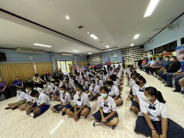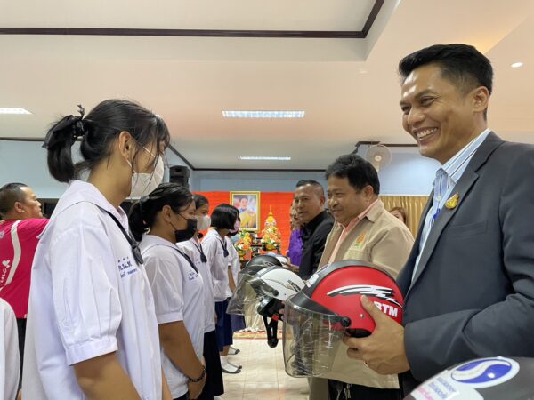 โดย อน.ธัญรัศม์ ฤทธิ์เทวา ประธานบำเพ็ญประโยชน์สโมสร และนายกวริษฐรดา เรืองแก้ถัดพงศ์ นายกสโมสร ร่วมกันกล่าวชื่นชมนักเรียนและได้มอบหมวกนิรภัย 118 ใบ ให้นักเรียนเพื่อสวมใส่ในการขับขี่จักรยานยนต์ถูกกฎจราจรและถูกกฎหมายขับขี่ปลอดภัย ชีวิตมีสุขซึ่งวิทยากรจากสถานีตำรวจบางกล่ำ ให้ความรู้ อย่างไรก็ตาม โครงการดังกล่าวนี้ ที่จัดขึ้นแก่นักเรียนเป็นแบบอย่างในการขับขี่ปลอดภัย และสอดรับกับนโยบายความปลอดภัยในสถานศึกษา สำนักงานคณะกรรมการการศึกษาขั้นพื้นฐาน ถือเป็นกิจกรรมที่สำคัญและเกิดประโยชน์ต่อประชากรวัยเรียนซึ่งมีการสาธิตการขับขี่ถูกกฎจราจร ที่สร้างความรู้ในการขับขี่อย่างมีน้ำใจและปลอดภัย