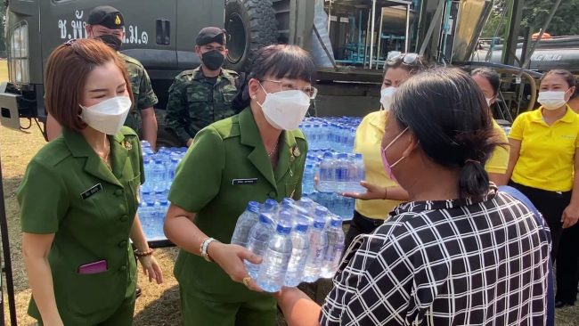 ด้าน พ.ท.ณัฐา สุภายศ ผบ.ช.พัน8 พล ม.1 เผยว่า วันนี้ได้นำรถผลิตน้ำดื่ม เพื่อบรรเทาสาธารณภัย มาผลิตน้ำดื่มแจกจ่ายชาวบ้านในพื้นที่ที่ทำการฝึก จำนวน 200 ขวด