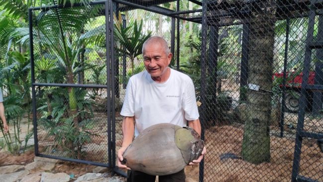 สวนนงนุชพัทยา ปลอกมะพร้าวแฝด สุก 11 ลูก ลูกแฝด 4 ลูก นำเมล็ดไปขยายพันธุ์ เพื่อเป็นการอนุรักษ์พันธุ์ไม้หายาก