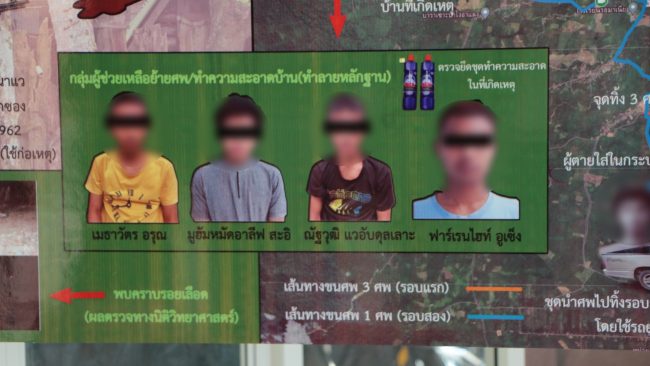 นราธิวาส-แถลงข่าวกรณีฆาตกรรมอำพลางซ่อนเร้นศพ 4 ราย จับกุมผู้ต้องหา 5 คน