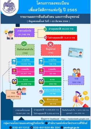 วันที่ 24 มี.ค.66 ผู้สื่อข่าวรายงานว่า ที่สำนักงานคลังจังหวัดประจวบคีรีขันธ์ นางพิศมัย แก้วแจ่มใส คลังจังหวัดประจวบ เปิดเผยถึงกรณีโครงการลงทะเบียนเพื่อสวัสดิการแห่งรัฐปี พ.ศ.2565 ว่า ได้มีการ เริ่มเปิดให้ลงทะเบียนมาตั้งแต่วันที่ 5 กันยายนที่ผ่านมา และขณะนี้อยู่ในระหว่างขั้นตอนการตรวจสอบสิทธิ์และยืนยันตัวตนตั้งแต่วันที่ 1 มีนาคมเป็นต้นมา หากใครที่ตรวจสอบสิทธิ์และได้รับสิทธิ์ก็จะต้องรีบมาดำเนินการยืนยันตัวตนได้ที่ธนาคารของรัฐ ทั้ง 3 ธนาคาร ประกอบด้วย ธนาคารกรุงไทย ธนาคารออมสิน และธนาคาร ธ.ก.ส. ได้ทั่วประเทศ โดยจะต้องนำบัตรประชาชนแบบสมาร์ทการ์ด(บัตรแข็ง) และบัญชีธนาคารที่ผูกพร้อมเพย์ด้วยบัตรประชาชน มายืนยันตัวตนกับธนาคาร เนื่องจากสิทธิ์โครงการสวัสดิการแห่งรัฐปี 65 ครั้งนี้จะเป็นการใช้จ่ายโดยผ่านบัตรประชาชน