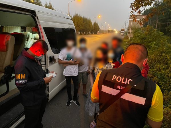 วันที่ 3 เม.ย.2566 ตม.จว.จันทบุรี อำนวยการโดย พ.ต.อ.เขมรินทร์ พิศมัย ผกก.ตม.จวจันทบุรี , พ.ต.ท.ศวัส โชติรณพัส รอง ผกก.ตม.จว.จันทบุรี สั่งการให้ พ.ต.ท.นิพนธ์ เรืองสม สว.ตม.จว.จันทบุรี พร้อมกำลังฝ่ายสืบสวน ตม.จว.จันทบุรี ร่วมกับ สภ.บ้านแปลง ตั้งด่านตรวจบริเวณริมถนนสาย จางวาง-บ้านแปลง ม.2 ต.หนองตาคง อ.โป่งน้ำร้อน จ.จันทบุรี ขณะที่ตั้งด่านตรวจอยู่นั้น พบรถยนต์ตู้ลักษณะมีพิรุธต้องสงสัยจำนวนสามคัน ขับขี่มาด้วยความเร็วตามกันมาจาก อ.สอยดาว จ.จันทบุรี มาใกล้ถึงจุดตรวจ จึงส่งสัญญาณมือให้ชะลอความเร็วเพื่อขอทำการตรวจค้นสิ่งผิดกฎหมายภายในรถ แต่ว่าเมื่อรถยนต์ตู้ทั้งสามคันเห็นด่าตรวจ กับเร่งเครื่องยนต์ขับรถฝ่าด่านตรวจ หลบหนีไปอย่างรวดเร็ว เจ้าหน้าที่ประจำด่านตรวจจึงได้ติดตามไปพร้อมทั้งประสานไปยังจุดตรวจผ่านแดนถาวร บ้านแหลม ต.เทพนิมิต อ.โป่งน้ำร้อน จ.จันทบุรี ให้ช่วยติดตามตรวจสอบ