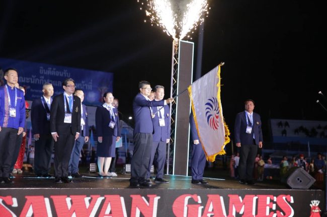 และผู้เชิญธงสัญลักษณ์การแข่งขันกีฬา นายจิตร์ติพนธ์ สัตตะพันธ์คีรี