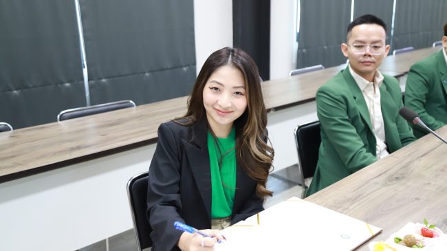 ในการนี้ อาจารย์ปรัชญพัชร วันอุทา คณบดีวิทยาลัยนวัตกรรมการจัดการ ให้การต้อนรับคณะผู้บริหารจากโรงแรมสเตย์บริจ สวีท กรุงเทพ ทองหล่อ และ โรงแรมสเตย์บริจ สวีท กรุงเทพ สุขุมวิท พร้อมกล่าวถึงสาระสำคัญของการลงนามบันทึกข้อตกลงความร่วมมือทางวิชาการในครั้งนี้ รวมถึงการส่งเสริมและสนับสนุนความร่วมมือการสร้างเครือข่ายในการพัฒนาองค์ความรู้ และเป็นแหล่งฝึกประสบการณ์แก่นักศึกษา และโอกาสเดียวกัน คุณสงกรานต์ รามณี ผู้จัดการฝ่ายทรัพยากรบุคคล และพัฒนาศักยภาพความสามารถ