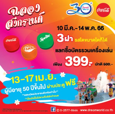 ฉลองเทศกาลสงกรานต์ วันครอบครัว วันผู้สูงอายุ ฉลองได้ทุกวัยที่สวนสนุกดรีมเวิลด์ กับโปรโมชั่น พิเศษ อายุ 50 ปีขึ้นไป ผ่านประตูฟรี