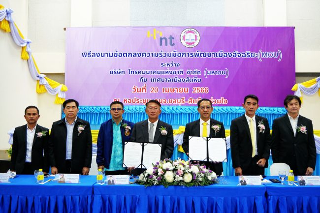 การลงนามบันทึกข้อตกลงความร่วมมือการพัฒนาเมืองอัจฉริยะ ระหว่างเทศบาลเมืองสัตหีบ กับบริษัทโทรคมนาคมแห่งชาติ จำกัด (มหาชน) หรือ NT ในฐานะผู้ให้บริการโทรคมนาคมและดิจิทัลของประเทศในวันนี้ จึงเป็นจุดเริ่มต้นที่สำคัญในการร่วมเป็นเครือข่ายการพัฒนาระบบโครงสร้างพื้นฐานด้นดิจิทัล เพื่อนำเอาเทคโนโลยีสารสนเทศมาเชื่อกับระบบอินเตอร์เน็ตและโครงข่ายโทรคมนาคมในเมือง เพื่ออำนวยความสะดวกกับประชาชน สร้างความเติบโตทางเศรษฐกิจให้กับธุรกิจขนาดเล็ก และพัฒนาคุณภาพชีวิตของประชาชนในเมืองในทุกมิติต่อไป