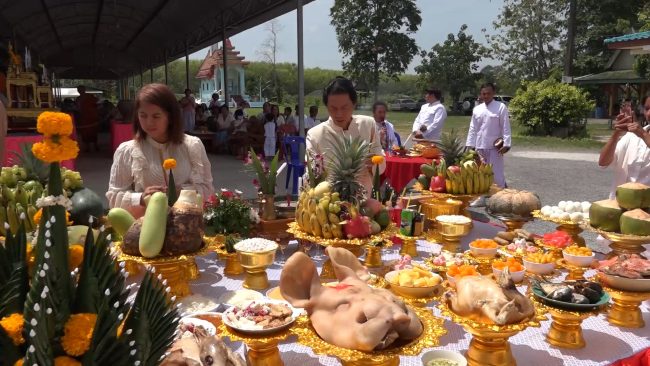 หลังจากเสร็จพิธีบวงสรวง น้องเรน ธีรเทพ นักร้องดาวรุ่ง จากเพลงพระนอนวัดโคกศักดิ์ ก็ได้แต่งชุดมโนราห์ รำ ถวายองค์พระเจ้าบรมวงศ์เธอ กรมหลวงชุมพรเขตอุดมศักดิ์ ต่อจากนั้นพระสงฆ์สวดเจริญพระพุทธมนต์ เป็นอันเสร็จพิธี ก็ได้มีการจุดประทัด ปรากฏว่าได้เลขเด็ดจากประทัด คือเลข 688 ผู้ที่มาร่วมในพิธี ต่างก็จดเพื่อนำไปเสี่ยงโชค ซื้อสลากกินแบ่งรัฐบาลต่อไป
