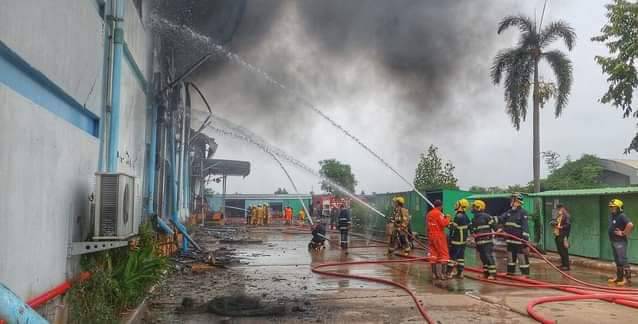ปทุมธานี ไฟไหม้โรงงานมาซูม่านาน 3 ชม.เสียหายกว่า 30 ล้านบาท