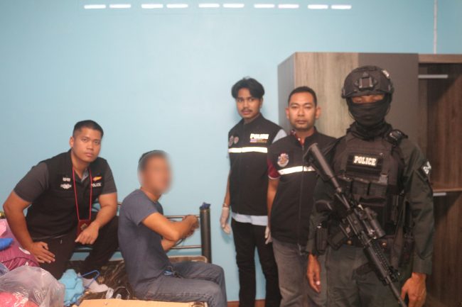 เจ้าหน้าที่เดินทางไปถึงพบร้านรับซื้อน้ำยางดังกล่าวอยู่ห่างจากสามแยกทางไปสวนดอกไม้ประมาณ 100 เมตร พบนายสุรศักดิ์ แนะเหน๊ะ อายุ 40 ปี ซึ่งเป็นเจ้าของ นั่งอยู่ที่เก้าอี้ด้านหน้า ตรวจค้นภายในห้องนอน พบยาบ้า 1 ถุง จำนวน 200 เม็ด ซุกซ่อนอยู่ในเสาหัวเตียง บุหรี่ ยี่ห้อ JOHN BLACK สีแดง จำนวน 200 ซอง อยุ่ในกล่องวางอยู่บนพื้น ภายในห้องนอน จึงประสานเจ้าหน้าที่ด่านศุลกากรเบตง เข้าตรวจสอบ และนำตัวมาทำบันทึกจับกุม และสอบที่กองร้อยตำรวจตระเวนชายแดนที่445