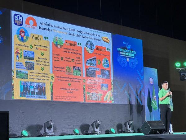 บริษัท ซันสวีท จำกัด (มหาชน) หรือ SUN เดินหน้าเชื่อมโยงเครือข่ายความร่วมมือกับธนาคารเพื่อการเกษตรและสหกรณ์การเกษตร (ธ.ก.ส.) อย่างต่อเนื่อง ร่วมลงนาม MOU โครงการส่งเสริมการปลูกข้าวโพดหวานด้วยเทคโนโลยีและนวัตกรรมทางการเกษตร ฉบับที่ 2 เพื่อขยายพื้นที่สู่ภาคเหนือตอนล่าง โดยมีผู้บริหาร และพนักงาน ธ.ก.ส. เข้าร่วมงานกว่า 1,600 คน