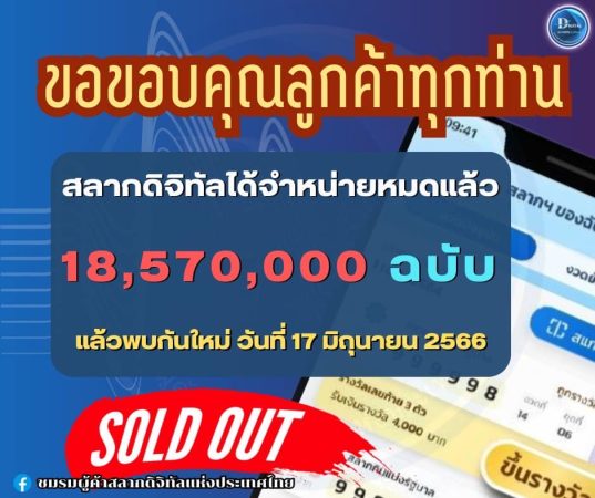 จำหน่ายหมดแล้ว!! สลากดิจิทัล งวด 16 มิถุนายน 2566