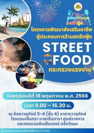 ขอเชิญเข้าร่วมโครงการพัฒนาส่งเสริมอาชีพผู้ประกอบการร้านสตรีทฟู้ด