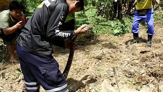 หลังจากที่เจ้าหน้าที่อสรพิษวิทยาภาคใต้ เขต จ.สงขลา และ กู้ชีพ อบต.สะท้อน ได้รับแจ้ง จึงรีบนำอุปกรณ์ในการจับสัตว์เลื้อยคลานรุดเข้าตรวจสอบ เมื่อเจ้าหน้าที่ไปถึงพบหลุมในตอไม้ผุ