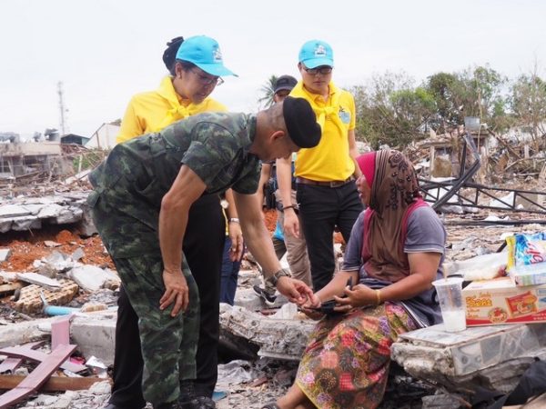 ซึ่งเป็นรถยนต์ขนาดใหญ่เข้าช่วยเหลือพี่น้องประชาชนที่ได้รับความเดือดร้อน ขนย้ายประชาชน พร้อมทั้งทรัพย์สิน อพยพเข้ามายังศูนย์พักพิง , จัดกำลังพล ชุดปฎิบัติการจิตอาสาฯ จากกรมทหารราบที่ 151 และ หน่วยขึ้นตรง จำนวน 50 นาย ทำหน้าที่อำนวยการความสะดวก และให้การช่วยเหลือกับพี่น้องประชาชนที่ได้รับความเดือดร้อนในพื้นที่เกิดเหตุ และศูนย์พักพิง (ศูนย์กีฬาองค์การบริหารส่วนตำบลมูโนะ ), รถบรรทุกน้ำ จำนวน 1 คัน ให้บริการน้ำแก่ผู้ประสบภัย ,ชุดทหารช่าง จำนวน 5 ชุดปฎิบัติการ พร้อมเครื่องยุทโธปกรณ์ในการวางแผน รื้อถอน ซากสิ่งก่อสร้างต่าง ๆ ก่อนจะพร้อมทำการเร่งปลูกสร้างที่อยู่อาศัยใหม่ให้กับผู้ประสบภัย พร้อมทั้ง ได้เน้นย้ำให้พี่น้องประชาชนให้ดูแลตัวเอง หากต้องการความช่วยเหลือสามารถแจ้ง หรือร้องขอความช่วยเหลือไปยังเจ้าหน้าที่ได้ตลอด 24 ชั่วโมง ตลอดจนได้ให้กำลังใจเจ้าหน้าที่ และกำลังพลที่ปฎิบัติหน้าที่ ช่วยเหลือประชาชน โดยกล่าวว่า “ พวกเราคือ ครอบครัวเดียวกัน เราจะไม่ทิ้งกัน” ในสถานการณ์ที่พี่น้องประชาชนได้รับความเดือดร้อน เช่นนี้ “ทหารเป็นต้องที่พึ่งให้กับประชาชนในทุกโอกาส”
