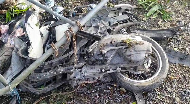 ส่วนพระหลบได้ทันไม่ได้รับบาดเจ็บและได้เสียหลักมาชนรถจักรยานยนต์ฮอนด้าสีดำน้ำเงินทะเบียน กทง นครนายก 234 ซึ่งมีแม่-ลูกและหลาน ทั้ง 3 คนมาจอดจยย.รอส่งลูกชายไปทำงานได้รับบาดเจ็บสาหัสทั้ง 3 คนกู้ภัยสว่างอริยะได้นำผู้บาดเจ็ยส่งโรงพยาบาลนครนายก ต่อมานางสาวมยุรี สุขใหญ่ หนึ่งใน 3 ผู้บาดเจ็บสาหัสได้เสียชีวิตที่โรงพยาบาลนครนายก ส่วนลูกชายและหลานอายุ 2 ขอบแพทย์ได้ช่วยรักษาอยู่ที่โรงพยาบาลนครนายก