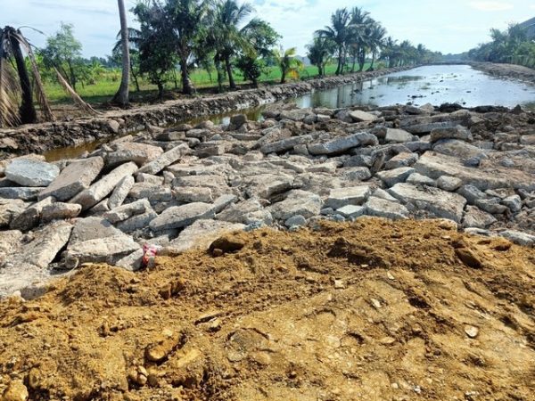 2. โครงการก่อสร้างถนนคอนกรีตเสริมเหล็กดังกล่าว ต้องดำเนินการรื้อถนนคอนกรีตเดิมที่ทรุดโทรมเสียก่อน เนื่องจากก่อสร้างมาเป็นเวลานาน ตั้งแต่ปี พ.ศ. 2540 สำหรับการรื้อถนนเดิมนั้น สัญญากำหนดให้ผู้รับจ้างเป็นผู้นำเศษวัสดุจากซากถนนเดิมไปหาสถานที่ทิ้ง
