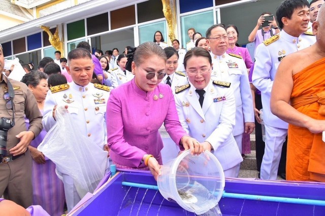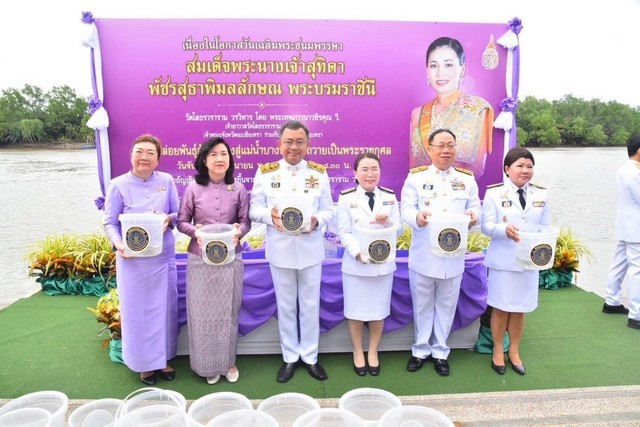 ฉะเชิงเทรา-ผู้ว่าราชการจังหวัดฉะเชิงเทรา นำพสกนิกรทุกหมู่เหล่าร่วมทำบุญตักบาตร ปล่อยพันธุ์ปลา ไถ่ชีวิตโคและกระบือ เนื่องในโอกาสเฉลิมพระชนมพรรษา ครบ 46 พรรษา สมเด็จพระนางเจ้าสุทิดา พัชรสุธาพิมลลักษณ พระบรมราชินี 3 มิถุนายน 2567