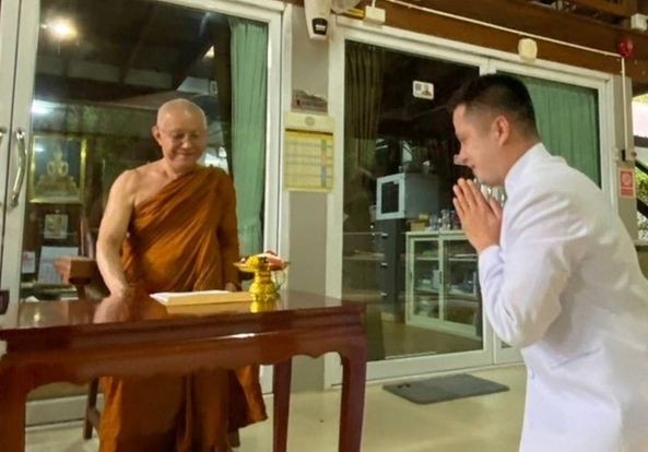 ประธานมูลนิธิพุทธภูมิธรรม กราบนมัสการ เจ้าอาวาสวัดป่าบ้านตาด จ.อุดรธานี ถวายรายงานเรื่องการร่วมสนับสนุน มูลนิธิเสียงธรรมเพื่อประชาชนฯ เผยแผ่ธรรมะภาคปฏิบัติ