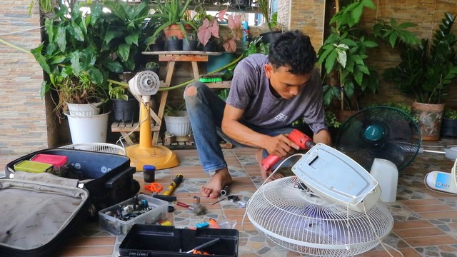 สงขลา-อาชีพเดินสายซ่อมพัดลมราคาไม่แพงโดนใจลูกค้าไม่ต้องเสียเวลาพาไปซ่อมไม่ต้องซื้อใหม่ใช้ได้เหมือนเดิม