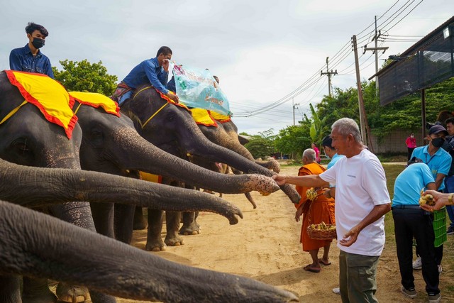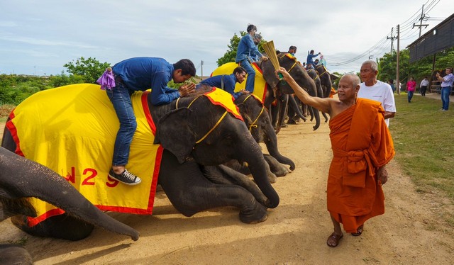 โดยภายในพิธี ได้จัดขบวนนางรำทักษิณาภิรมย์ และโขลงช้าง จำนวนกว่า 30 เชือก