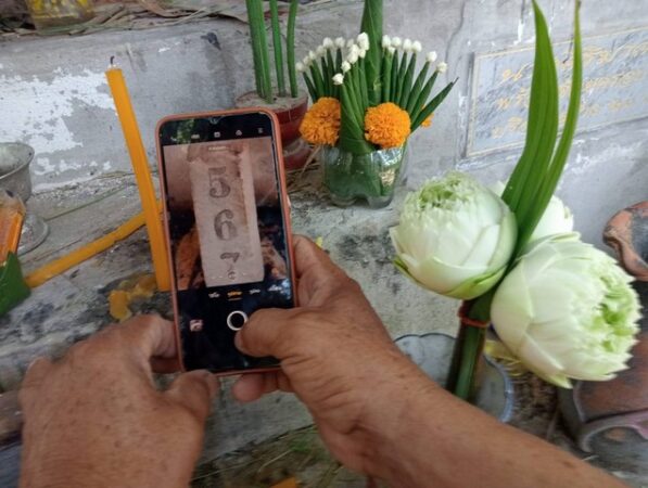 อย่างไรก็ตาม ในพิธีทำบุญเบิกบ้าน ซึ่งมีการจุดธูปเทียนบูชา กราบไหว้และสักการะสิ่งศักดิ์สิทธิ์ดังกล่าวแล้ว ในส่วนของผู้นิยมเสี่ยงโชคลาภ ยังได้ส่องเลขเด็ดจากธูปมงคลที่นำมาจุดสักการะและเสี่ยงทายอีกด้วย โดยตัวเลขที่ได้และเห็นชัดเจน เด่นมาก คือ 5 6 7 โดยหวังจะนำไปซื้อเลขท้ายสลากกินแบ่งรัฐบาล ในงวดประจำวันที่ 16 มิ.ย.ที่จะถึงนี้