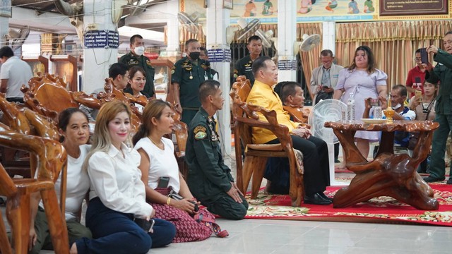 เมื่อเวลา 13.00 น.วันที่ 7 กรกฎาคม 2567 ผู้สื่อข่าวรายงาน ม.ร.ว.จิราคม กิติยากร ประธานพิธี กดแท่นพิมพ์นำฤกษ์สร้างเหรียญเจริญพรเลื่อนสมณศักดิ์ พระครูนันทจริยาภรณ์(หลวงพ่อสมคิด นนฺทิโย) เจ้าอาวาสวัดบึงตาต้า ต.หนองไร่ อ.ปลวกแดง จ.ระยอง พร้อมด้วย หลวงพ่อสมคิด ประธานฝ่ายสงฆ์ ท่ามกลางประชาชนจำนวนมากที่เดินทางมาร่วมพิธีพร้อมแจกบัตรคิวผู้ที่มาร่วมจองเหรียญตั้งแต่เช้า