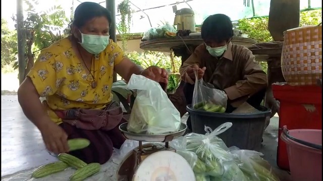 ซึ่งตนจะเก็บผลมะระจีนวันเว้นวัน แต่ละวันเก็บผลผลิตได้ประมาณ 20 กิโลกรัม ในแต่ละรอบการปลูกมะระจีน สามารถเก็บได้ประมาณ 20 ครั้ง โดยจะมีพ่อค้ามารับซื้อถึงบ้าน ในราคากิโลกรัมละ 40 บาท และหากนำไปขายเองจะได้ราคากิโลกรัมละ 50 บาท คาดว่าผลผลิตรอบนี้จะมีรายได้ไม่น้อยกว่า 15,000 บาท นอกจากนี้ กระเจี๊ยบเขียว ที่ปลูกไว้ในช่องว่างระหว่างแถวมะระก็เริ่มให้ผลผลิตแล้ว โดยที่แปลงผักจะปลอดภัยจากสารพิษใช้เพียงปุ๋ยคอกและปุ๋ยน้ำหมักเท่านั้น ไม่มีการนำสารเคมีมาใช้ในการผลิตพืชผัก