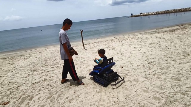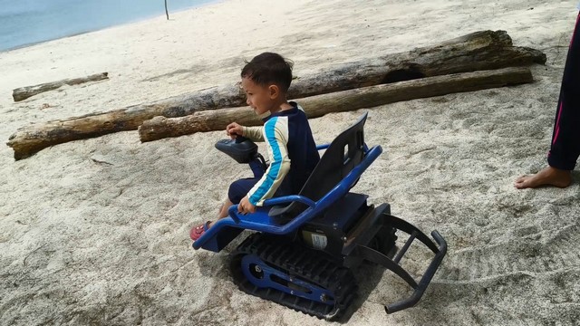 สงขลา-ของเล่นใหม่สำหรับเด็กๆ “รถตีนตะขาบไฟฟ้าชายหาด”ที่สร้างสรรค์นำมาบริการบุตรหลานนักท่องเที่ยว พ่อแม่ ผู้ปกครอง ที่ เด็กเล็กสามารถขับขี่เล่นบริเวณชายหาดได้อย่างสนุกสนาน