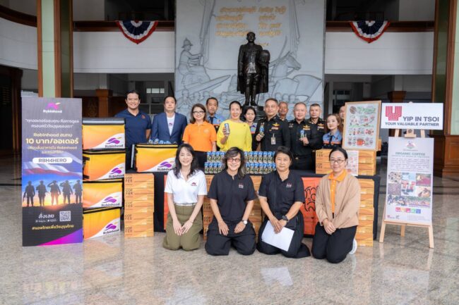ทางบริษัท ยิบอินซอย จำกัด โดย คุณมรกต ยิบอินซอย กรรมการผู้จัดการใหญ่และประธานเจ้าหน้าที่บริหาร คุณแววรัตน์ ชำนาญภักดี ผู้อำนวยการสายงานทรัพยากรบุคคลและสื่อสารองค์กร บริษัท ยิบอินซอย จำกัด พร้อมทั้งผู้บริหาร Robinhood คุณพงศ์ปณต อิงคสิทธิ์ ประธานเจ้าหน้าที่บริหารฝ่ายธุรกิจ Chief Commercial Officer (CCO) มอบกาแฟกระป๋องพร้อมดื่ม “กาแฟรักษ์ป่า” สาละวะไล่โว่