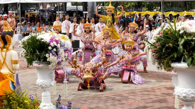 พิธีเปิดเริ่มต้นด้วยการแสดงของนักเรียนจากโรงเรียนเทศบาล 5 (วัดหัวป้อมนอก) ที่รังสรรค์การแสดงในชื่อชุด “อรุณเบิกฟ้า สงขลาเมืองเสน่ห์” บอกเล่าเรื่องราวชีวิตที่ต้องเดินไปข้างหน้าอย่างไม่หวั่นไหว พร้อมขับเคลื่อนวัฒนธรรมท้องถิ่นก้าวไปอย่างมีความสุข สนุก และภาคภูมิใจ ดังคำกล่าวที่ว่าสงขลาเมืองพหุวัฒนธรรมแดนใต้ จากนั้นต่อด้วยขบวนอัญเชิญถ้วยพระราชทานการประกวดเรือพระ สมเด็จพระกนิษฐาธิราชเจ้า กรมสมเด็จพระเทพรัตนราชสุดาฯ สยามบรมราชกุมารี ซึ่งในปีนี้ มีเรือพระเข้าร่วมประกวด ประเภทประเพณีนิยม จำนวน 13 วัด และประเภทประเพณีอนุรักษ์ท้องถิ่น จำนวน 8 วัด