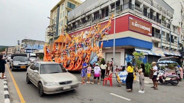อำเภอเมืองสงขลา จังหวัดสงขลา โดยเรือพระ และขบวนเรือพระ จากหลากหลายวัดในพื้นที่จังหวัดสงขลา ได้เริ่มทยอยเดินทางเข้าสู่ตัวเมืองสงขลาตั้งแต่ช่วงเช้า เพื่อให้พี่น้องประชาชนพุทธศาสนิกชน ได้ยลโฉม และได้ชมความสวยงามอย่างใกล้ชิด ซึ่งแต่ละวัดได้มีการประดับตกแต่งออกมาด้วยความวิจิตรอลังการ โดยจะอัญเชิญ “พระพุทธรูป” หรือ “พระพุทธสิหิงค์จำลอง” ขึ้นประดิษฐานบน “เรือพระ” ขนาดใหญ่ ที่ตกแต่งไปด้วยดอกไม้สด การแกะสลักลายกนก ลวดลายศิลปะพื้นบ้าน บางวัดสร้างเรือพระขนาดใหญ่จำลองเป็นรูปสัตว์ในตำนาน เช่น พญานาค หงส์ หรือเรือสุพรรณหงส์ รวมถึงการจำลองสวรรค์ชั้นดาวดึงส์ เพิ่มความงดงามตระการตาให้กับขบวน สมความยิ่งใหญ่ของงานบุญใหญ่ภาคใต้