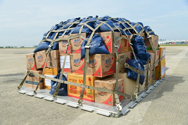 โดยในวันนี้ ได้ลำเลียงถุงยังชีพพระราชทาน จำนวน 200 ถุง และสิ่งของอุปโภคบริโภคอื่นๆ จากมูลนิธิเพื่อนพึ่ง (ภาฯ) ยามยาก สภากาชาดไทย ได้แก่ อาหารอุ่นร้อน 16 ลัง อาหารสำเร็จรูป จำนวน 1,340 ลัง เสื้ออาสาสีส้ม จำนวน 60 ตัว ถุงมือยางสำหรับประกอบอาหาร จำนวน 3 ลัง ส้วมกระดาษ จำนวน 197 ชุด กล่องใส่ข้าว จำนวน 30 ลัง และถุงยังชีพของกองทัพอากาศอีกจำนวน 100 ถุง