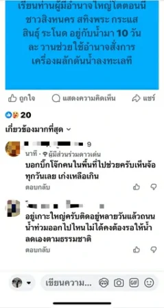 “สงขลาระอุ” ดราม่าเดือดกลางโซเชียล หลังชาวคาบสมุทรสทิงพระติดน้ำท่วม 10 วัน สส.เขต 4 เดือดคอมเมนต์กลับจนปะฉะดะกลางเฟซบุ๊ก
