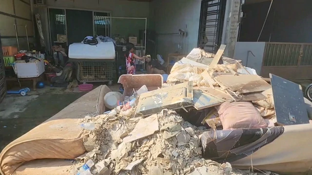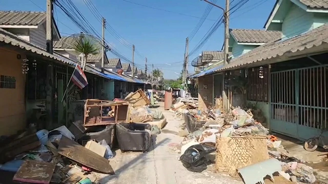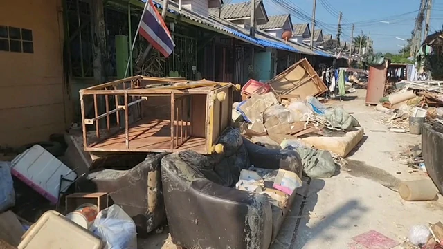 โดยส่วนใหญ่ เป็นเฟอร์นิเจอร์ไม้อัด และฝ้าเพดาน ที่ถูกน้ำท่วม จนพอง ไม่สามารถที่จะใช้งานต่อไปได้ ก็ถูกรื้อออกมาวางกองทิ้งไว้