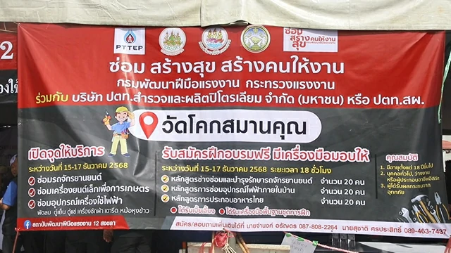 นายสมาสภ์ ปัทมะสุคนธ์ อธิบดีกรมพัฒนาฝีมือแรงงาน กล่าวเพิ่มเติมว่า การเร่งฟื้นฟูสภาพความเป็นอยู่ให้กลับสู่ภาวะปกติ เป็นภารกิจเร่งด่วนที่ภาครัฐต้องเข้ามาดำเนินการช่วยเหลือ กรมพัฒนาฝีมือแรงงาน กระทรวงแรงงาน ในฐานะหน่วยงานหลักด้านการพัฒนาศักยภาพแรงงาน ซึ่งมีบุคลากรและเครือข่ายช่างฝีมือทั่วประเทศ จึงได้ร่วมกับบริษัท ปตท.สำรวจและผลิตปิโตรเลียม จำกัด (มหาชน) จัดทำโครงการ “ซ่อมสร้างสุข สร้างคนให้งาน” กิจกรรมจัดขึ้นระหว่างวันที่ 11–17 ธันวาคม 2568 โดยมี 4 กิจกรรมสำคัญ ได้แก่ 1. การซ่อมแซมรถจักรยานยนต์ เครื่องยนต์ขนาดเล็ก และเครื่องใช้ไฟฟ้า รวมกว่า 2,000 ชิ้น ซึ่งดำเนินการโดยช่างอาสา และช่างทุกคนที่ร่วมภารกิจจะได้รับค่าจ้างวันละ 600 บาท ถือเป็นการสร้างงาน สร้างรายได้ไปพร้อมกับการช่วยเหลือประชาชน 2. การฝึกอบรมยกระดับฝีมือให้แก่แรงงานอิสระ ในหลักสูตรช่างจักรยานยนต์มืออาชีพ ช่างซ่อมอุปกรณ์ไฟฟ้าภายในบ้าน และการประกอบอาหารสตรีทฟู้ด การฝึกอบรมไม่ต้องเสียค่าใช้จ่ายใด ๆ พร้อมได้รับเบี้ยเลี้ยงคนละ 760 บาทตลอดหลักสูตร 3. แรงงานอิสระที่ผ่านการฝึกอบรมจะได้รับวุฒิบัตรจากกรมพัฒนาฝีมือแรงงาน และได้รับเครื่องมือทำมาหากินมูลค่า 2,000 บาท เพื่อเป็นทุนตั้งต้นให้สามารถนำทักษะที่ได้ไปต่อยอดอาชีพ สร้างรายได้ และกลับมายืนหยัดได้อย่างมั่นคงอีกครั้ง 4. มอบข้าวสารให้แก่ผู้มาใช้บริการ จำนวน 600 กิโลกรัม