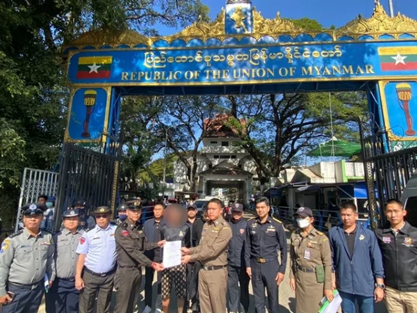 วันที่ 29 ธันวาคม 2568เวลา 12.00 น. โดยการอำนวยการของ พล.ต.ท.ภาณุมาศ บุญญลักษม์ ผบช.สตม. , พล.ต.ต.พันธนะ นุชนารถ รอง ผบช.สตม. , พล.ต.ต.สราวุธ คนใหญ่ ผบก.ตม.5 , พ.ต.อ.เอกกร บุษบาบดินทร์ รอง ผบก.ตม.5 มอบหมายให้ พ.ต.อ.สุรศักดิ์ เทียนทอง ผกก.ตม.จว.เชียงราย , พ.ต.ท.ตุลย์วรรษ ณรงค์ศักดิ์,พ.ต.ท.วิชัย ปันนา,พ.ต.ท.ภัทรพงศ์ ชูชื่น สว.ตม.จว.เชียงรายได้รับการประสานจากตรวจคนเข้าเมืองจังหวัดท่าขี้เหล็ก สาธารณรัฐแห่งสหภาพเมียนมา แจ้งจะมีการส่งตัวผู้ต้องหา ซึ่งได้กระทำผิดกฎหมาย โดยถูกดำเนินคดีในประเทศเมียนมา และคดีได้สิ้นสุดแล้ว จึงได้ประสานกับเจ้าหน้าที่ ตม.จว.เชียงราย และเจ้าหน้าที่ ปปส. เพื่อจะส่งตัวกลับประเทศไทย