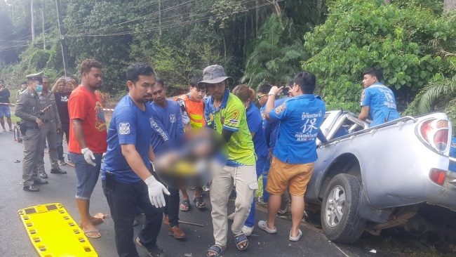 กระบี่-เกิดเหตุสลดรถกระบะ คนงานจับกุ้ง เสียหลักพุ่งชนรถกระบะ ที่ขับสวนมา เป็นเหตุให้มีผู้เสียชีวิต 5 รายหนึ่งใน 3 รายเป็นคนครอบครัวเดียวกัน