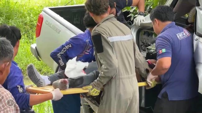 ร้อยเอ็ด…กลับไม่ถึงบ้าน…กระบะหลับในเสียหลักพุ่งชนต้นไม้เจ็บ5รายติดในรถ จุดหมายเยี่ยมญาติป่…