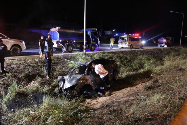 สลด 2 หนุมสาวรัสเซีย ซิ่งเก๋งเสียหลักตีลังกาฟาดต้นปาล์ม ดับสองราย เมื่อเวลา 05.00 น.วันที่…