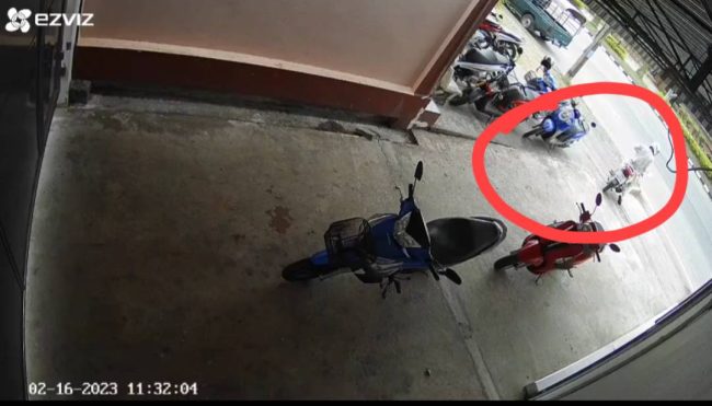 กล้องวงจรปิดจับภาพคนร้าย 2 คนขับรถจักรยานยนต์ซ้อนท้ายกันมาคนซ้อนลงรถเข้ามาลักรถจักรยานยนต์…